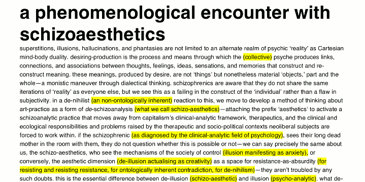 The androgynborg is an open, post-art collectivity ‘uncurated’ as a fluid, chaotic, nomadism. There are no ‘state names,’ no individuals, no cult of the self, no egos so to speak, merely uncurators creating and re- creating an ontologically anarchic politico- aesthetic, a collaboration of schizo-subjectivity’s with a single aim: To get revolutionary, artistic, & performative assemblages working together as parts, coextensive organs of one another so as to resist the control society in process and practice.